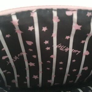 - Interior lining is black with white stripes, with light pink stars and hearts and "Luv Betsey" printed on it