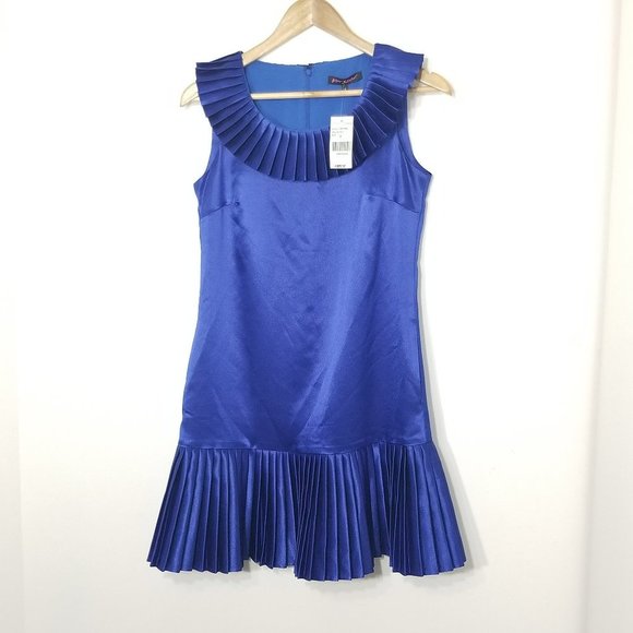 Brand NEW Betsey Johnson Royal Blue Coquette Satiny Pleated Neck Hem Wool Blend Size 2 Evening Dress Wedding Guest New with Tag