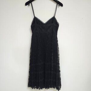 Betsey Johnson NY Women's Black Lace Sleeveless V-Neck Pleated Midi Dress Size 8
