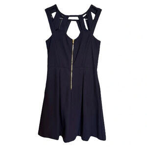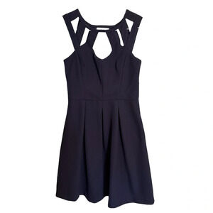 Betsey Johnson Navy Cage Cutout Pockets Pleat Mini Dress Fit and Flare EUC Sz 10