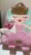Adorable pink backpack with heart accents and a gold label. Ideal for a playful look.