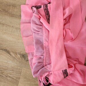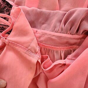 Betsey Johnson Pink Black Sheer Babydoll Top Ruffle Hem Flowy Coquette Size S