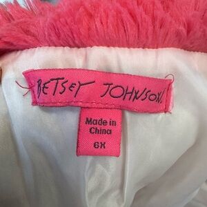 Chic Betsey Johnson piece with a vibrant pink fur collar. Adds a bold touch to any look.