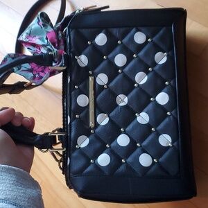 Betsey Johnson Polka dot crossbody bag. Floral scarf. Removable strap.