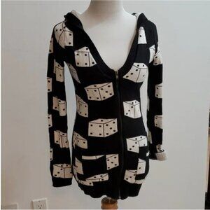Betsey Johnson "Roll the Dice" zip up sweater hoody hoodie tunic dress c…