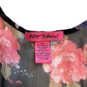 Betsey Johnson Sheer Black & Pink Floral Cardigan Cover Up Kimono