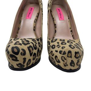 Betsey Johnson Sonya Shoes Leopard Print Suede Pump Platform Heels Women's 8