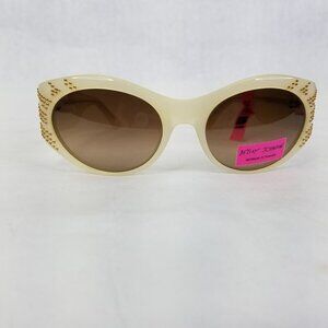 Betsey Johnson Sunglasses Pearlized White Plastic Cat Eye Gold Studs Size Small
