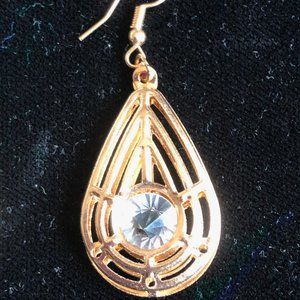 Beautifully crafted earrings in gold teardrop shape, with a single blingy crystal on each one. Wear these from day to evening, work or play.