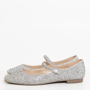 Betsey Johnson Tess Silver Sparkle Mary Jane Flats Rhinestone Sparkly Bridal