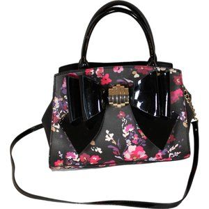 Betsey Johnson Top Handle Purse with Crossbody Strap Large Bow Floral PU84