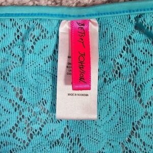 Betsey Johnson Shirt Womens Medium Blue Lace Sheer Trumpet Sleeve Tunic Top