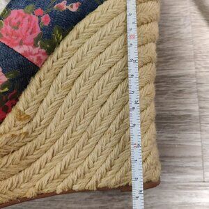 Size 8.5 Betsey Johnson floral print denim espadrille platform wedge