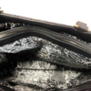 Betsey Johnson Women Black PVC Quilted Double Handle Shoulder Strap Tote Handbag.