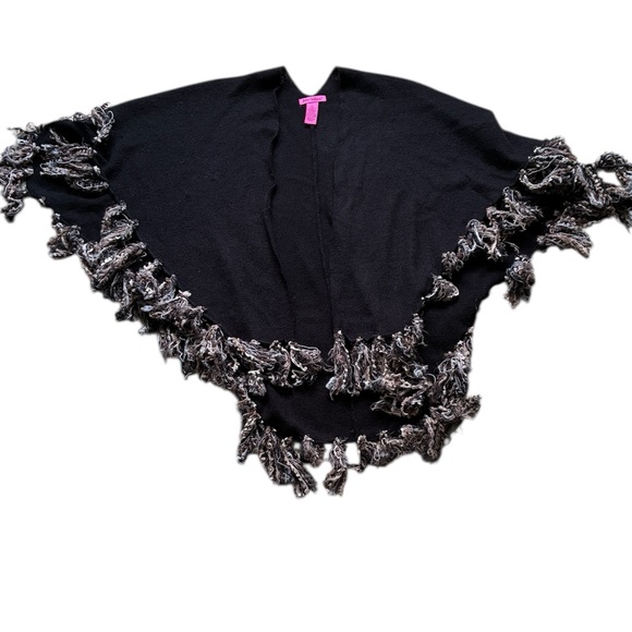 Betsey Johnson Women’s Black Fringe Poncho Sweater One Size