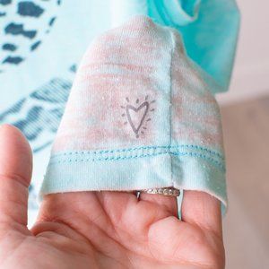XOX text graphic runs up front of shirt