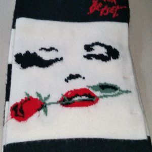 Betsey Johnson black and white striped winter scarf EUC