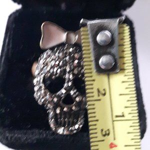 Betsey Johnson gunmetal grey rhinestone SKULL ring