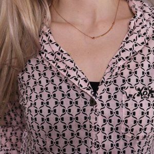 In amazing pre-loved condition. Sleeping, but make it fashion. Lightweight and comfy, you'll really get some beauty sleep in these pjs. The heart-shaped sparkly buttons are super cute. Tag says size M, but it fits like a S so I've listed it as such. For context I'm 5'7 and typically wear size XS/S.