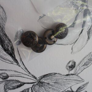 Missing 6 buttons. I have 4 of them in a bag. So the front will look original if you use the one ornate button from the waist strap (last photo) and use those 5 to replace all front missing buttons. Then use 2 black buttons of yours for the strap.