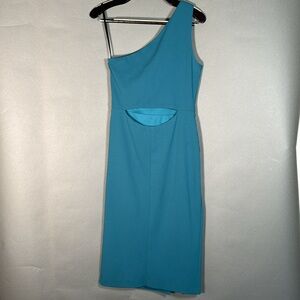 Betsy & Adam, One-Shoulder Ruched Sheath Dress, teal, size 8, NWT