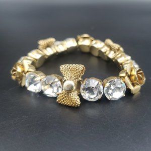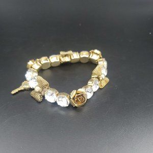 Stunning gold toned bracelet with roses filigree Bows and sparkly glass