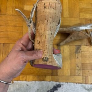Betsy Johnson silver leather scrappy bow heels with cork heels