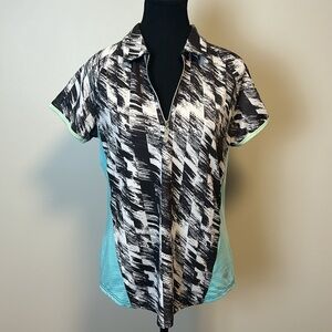 Bette & Court Blue, White Black Short Sleeve Golf Shirt Sz M