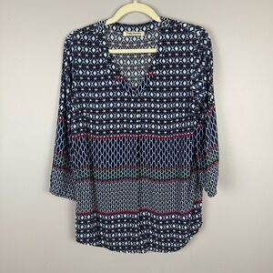 Betty Barclay Blue Red and White Relaxed Graphic Tunic Size Medium