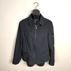 Betty Barclay Military Utility Cutout Boho Dark Fairy Collared Zip Jacket L