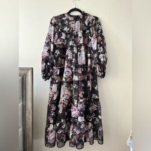 Beulah Style Sheer Floral Purple Tiered Ruffled Trim Long Dress (Sz Large)