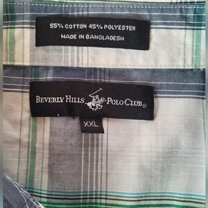 Beverly Hills Polo Club Green and Blue Plaid Shirt, Size 2XL