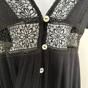 Bewitching BLACK BABYDOLL DRESS Lace rimmed V Neck & Waist Iridescent Buttons