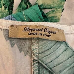 Beyond Capri Jungle Leaf Green and Cream Print Maxi Dress Linen Cotton Blend XXL Italy