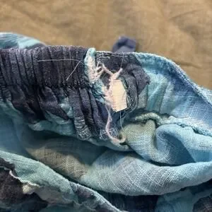 Pre owned, flawed condition with wash wear, elastic on the inner waistband is visible