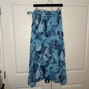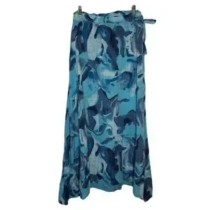 Beyond Capri Woven Maxi Skirt Womens Blue Abstract Resortwear Vacation Beach