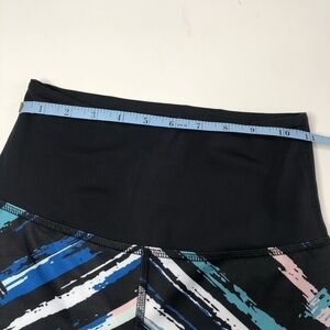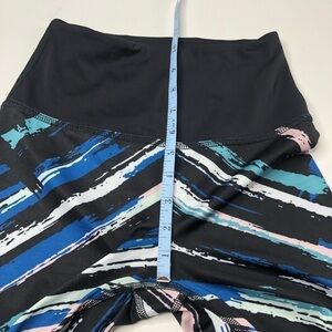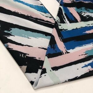 Beyond Yoga Chevron Watercolor Stripped Midi High Rise Leggings. The artsy painted chevron stripes are in a pastel blush pink, white, blue, pastel mint, beige, grey and black color. Stretchy, comfy and high waisted. In excellent like new condition with no flaws. Pristine condition. Please see photos for measurements and details. Women’s size SMALL.