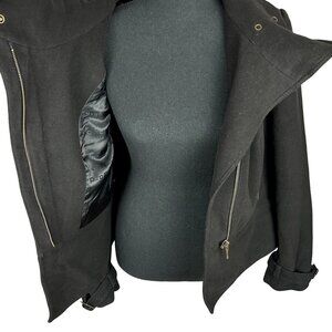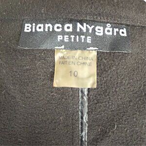 Beautiful black spring or fall jacket by Bianca Nygard. Zipper closure with snap button collar. Side pockets. Listed as a size 10.