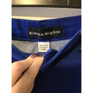 Lovely bright blue jeggings by Bianca Nygard! These pants feature a denim-style fabric with some stretch and rolled up cuffs. They do have some minor wear as shown in the photos. Overall they are in good condition!