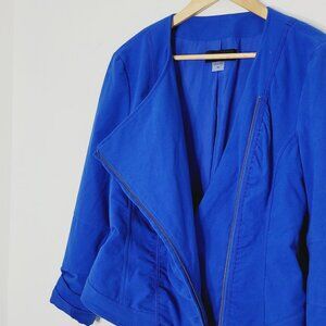 Bianca Nygard Elegant Royal Blue Soft Long Sleeve Off Side Zip Blazer Plus Sz 14