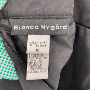 Bianca Nygard Skirt Women's10 Midi Formal Black Rear Zip Patented Leather Trim