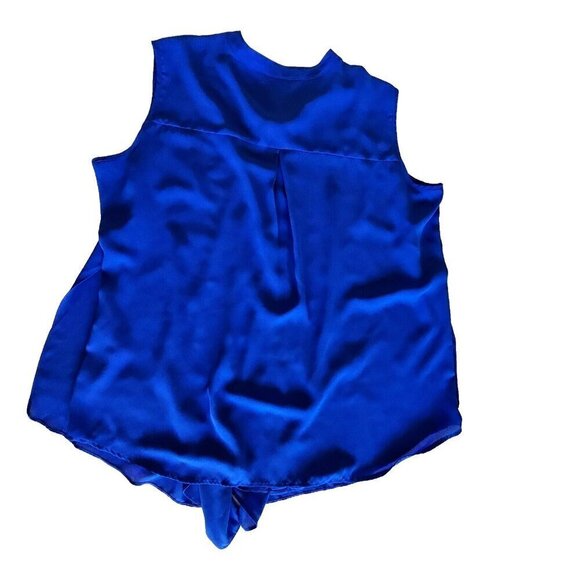 Bianca Nygard Top Plus Size Womens Cobalt Blue Sleeveless Round Neck Button Up Flowy Assymetric Front Hem
