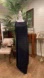 Very dark navy blue maxi dress — reads almost indigo-black depending on lighting. Clean, minimalist silhouette with a subtle A-line shape and tailored bust for a flattering drape. Fabric has excellent stretch, making this both comfortable and forgiving through the body.