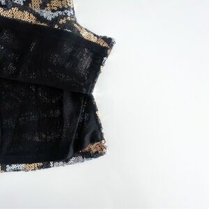 Bianca Nygard Petite Sequined Top Women's 6 V-Neck Gold Silver Cap Sleeves Lined