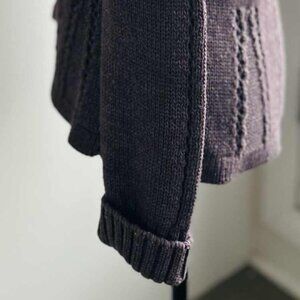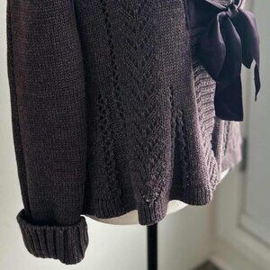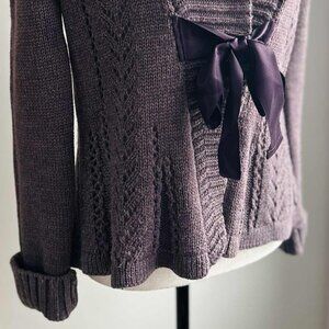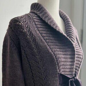 Bianco & Blu Smoky Plum Heather Lacy Knit Wool Cardigan with Satin Tie – EU M