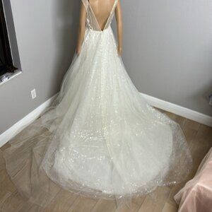The high-end quality of this sample dress is amazing. You will not be disappointed. I have compared my designer sample gowns to many others, and you cannot beat. This quality quality shows beading sequin tulle lace slips and more. Comes with transparent zip up and hang up garment bag!