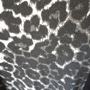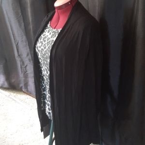 Animal print top with attached long black "sweater" is 100% viscose. Size 3X. Tiny hole near tag. Long sleeves, great for the office.