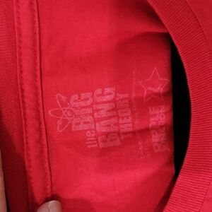 Men's size L Big Bang Theory t-shirt. This red shirt features Sheldon with The Flash logo. In a tribute to David Bowies Ziggy Stardust. 100% Cotton in excellent condition.