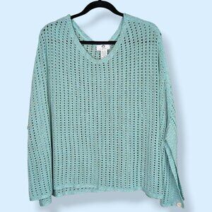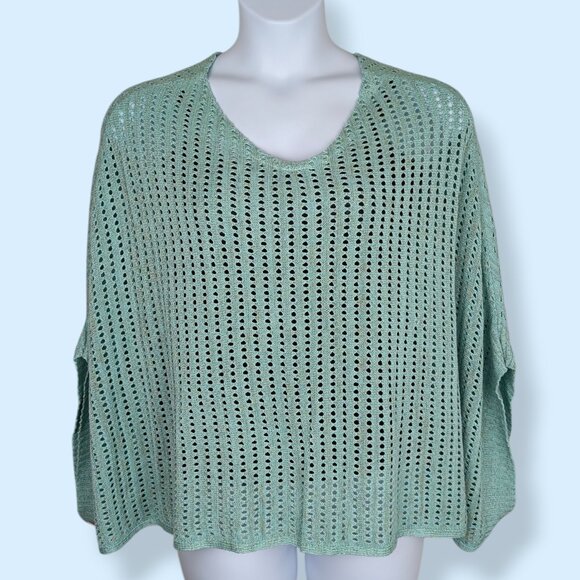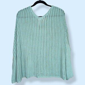 Big Buddha Green-Blue Metallic Open Knit Poncho Sweater