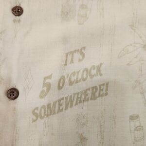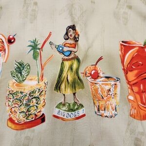 Big Dogs Hawaiian Button Up Shirt Mens L It's 5 O'Clock Somewhere Rayon AOP Camp 50s Style